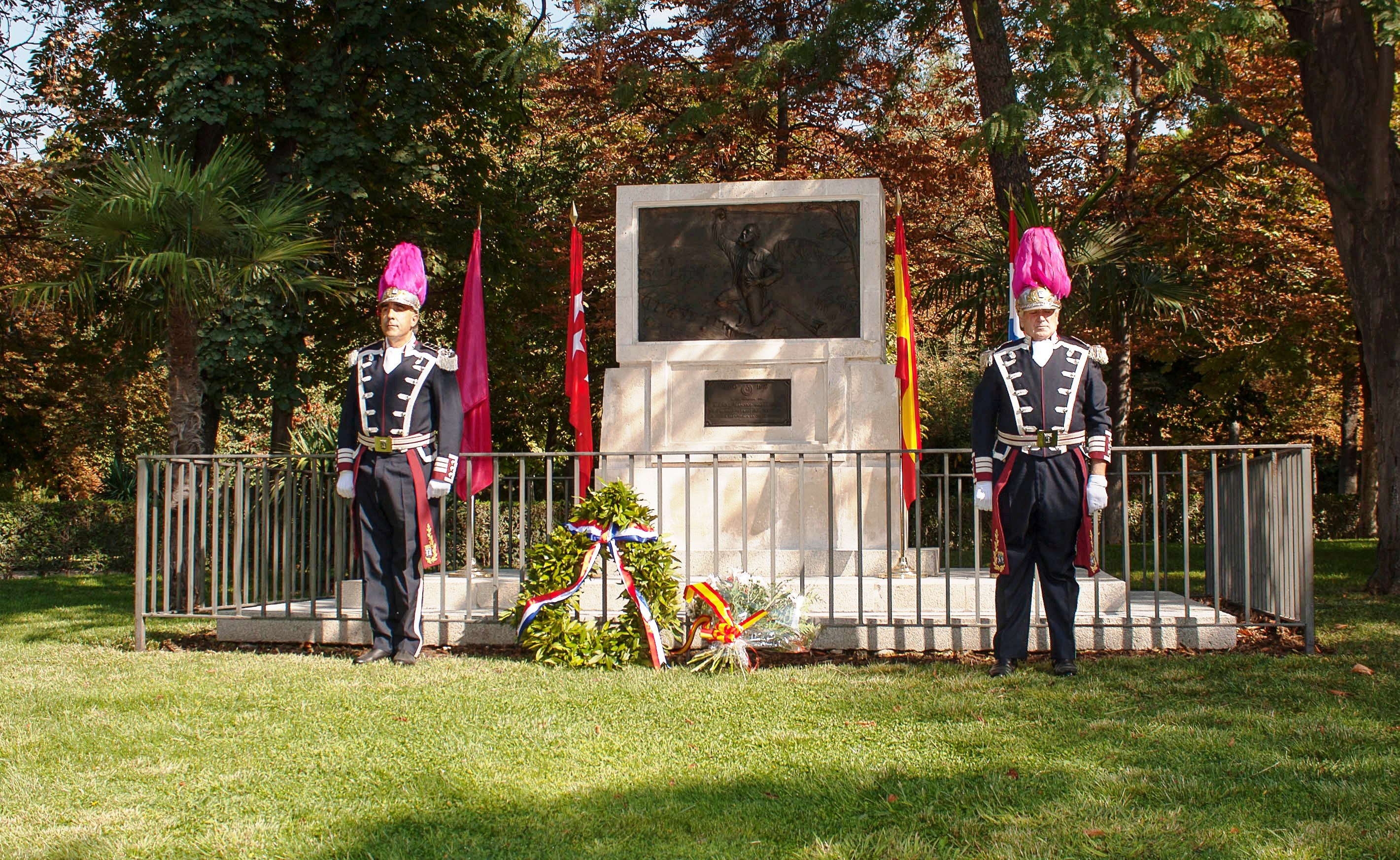Ofrendas florales depositadas por la Guardia de Honor ante la placa recordatoria