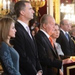 Sus Majestades los Reyes, Don Juan Carlos y Doña Sofía, acompañados por Sus Altezas Reales los Príncipes de Asturias, presidieron la tradicional recepción anual ofrecida, el 5 de febrero del corriente año, al Cuerpo Diplomático acreditado ante el Reino de España en el Palacio Real de Madrid, con la presencia del Presidente del Gobierno, Mariano Rajoy, y del Ministro de Asuntos Exteriores y de Cooperación, José Manuel García-Margallo.